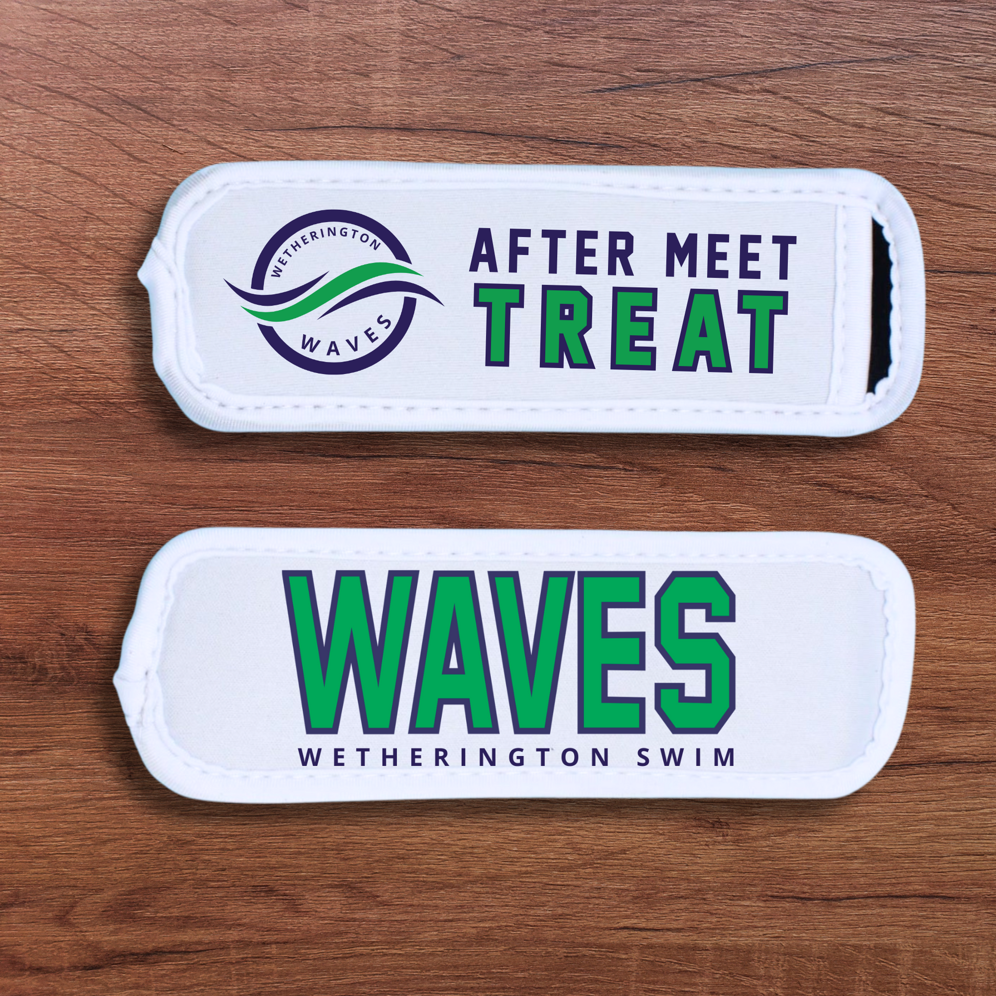 Our "After Meet Treat" popsicle holders are the perfect way to enjoy your Flav-O-Ice sticks or frozen Go-Gurt without freezing your fingers or making a sticky mess. Designed for swim meets, hot summer days, and anytime you need a sweet chill, these handy sleeves keep treats cool and hands comfy. Slide in your frozen favorite and enjoy every bite—mess-free