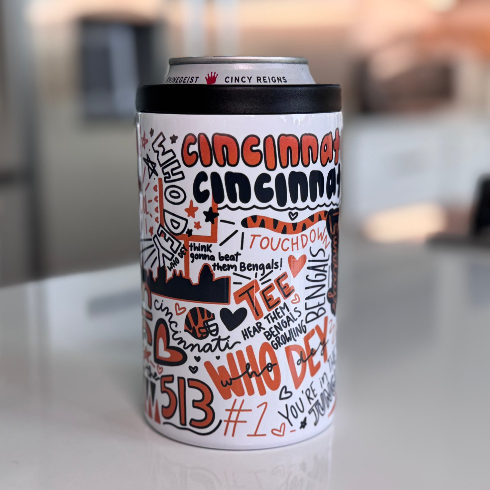Keep your game-day drinks chilled in style with this limited edition collab from our Signature Artist Series. Featuring exclusive Bengals-inspired artwork by Cincinnati native Grace Harris, this stainless steel insulated cooler is designed to keep your favorite regular cans ice-cold from kickoff to the final whistle.